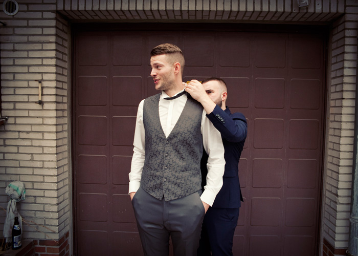 John, der für uns schon einige Jahre gemodelt hatte, versammelte seine Jungs beim “Getting Ready” um sich,  und sie halfen ihm, seine Nervosität zu überwinden.