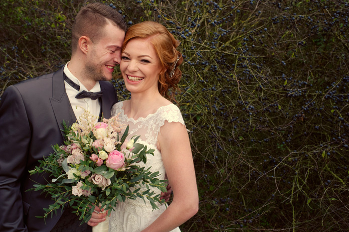 Wir waren absolut begeistert von Sinas Wahnsinnsfrisur, ihrem schönem Makeup und dem wunderbaren Bouquet von Sarah Schütte, https://stilvoll-werkstatt.de